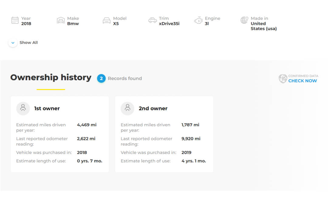 Your comprehensive Vehicle History Report provides ownership records, details of any accidents or damage, and correct odometer readings.